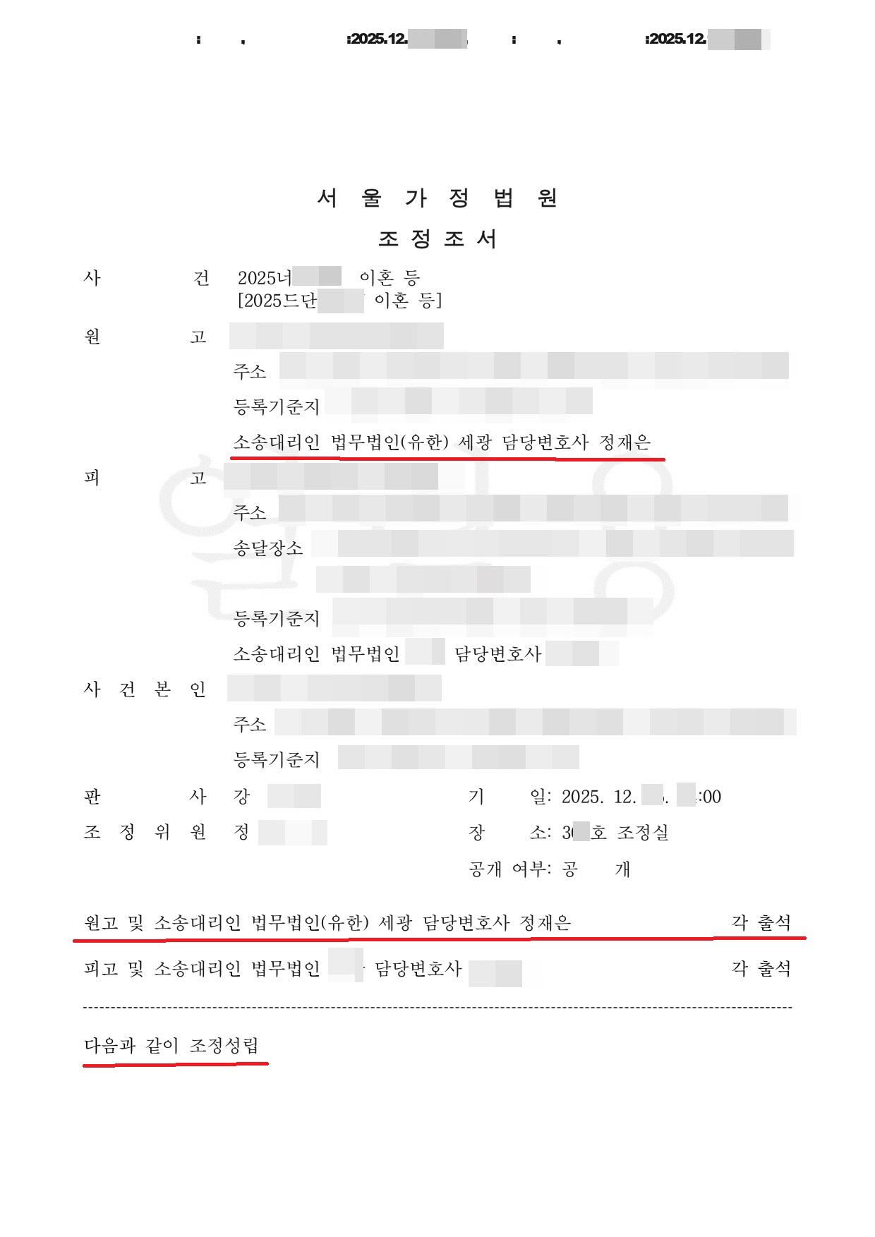 조정을 통해 이혼소송을 마무리할 수 있었습니다.