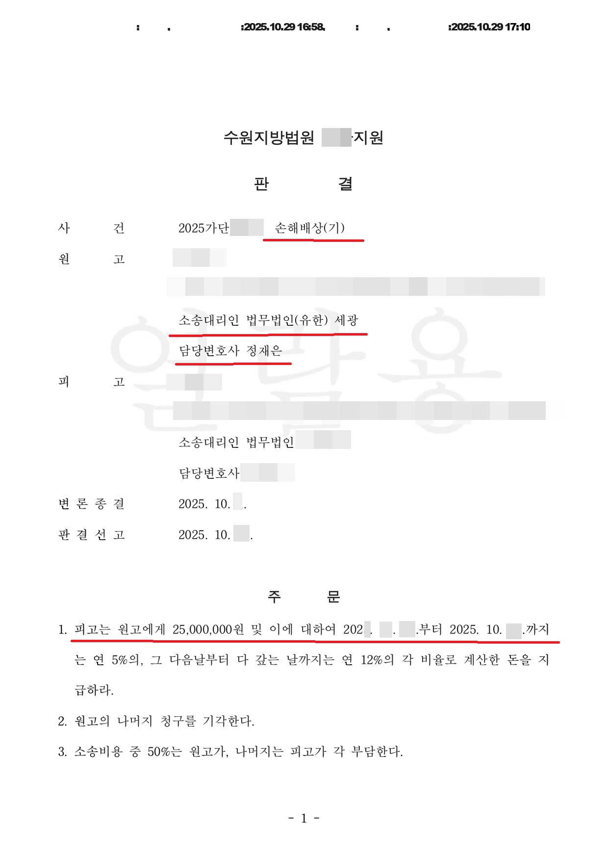 상간소송 위자료로 2,500만 원을 판결받은 상간소송 사례 페이지 정보 작성자 정재은변호사 조회45회 댓글0건 관련링크 다음글 목록 본문 1. 사건 개요의뢰인(남편)은 배우자와 상대방(상간남 피고)의 외도 사실을 알고 큰 고통을 겪다상간남 소송에 이르게 되었는데, 자녀들을 위해 가정은 쉽게 깨기 어려웠기에 더욱 고심이 컸습니다. 2. 변호사의 조력 상대방(상간남 피고)의 부정행위 사실을 재판부에 적시하였고상간남 위자료로는 비교적 큰 액수에 해당하는 2,500만 원 위자료 판결을 받을 수 있었습니다. 다음글 목록