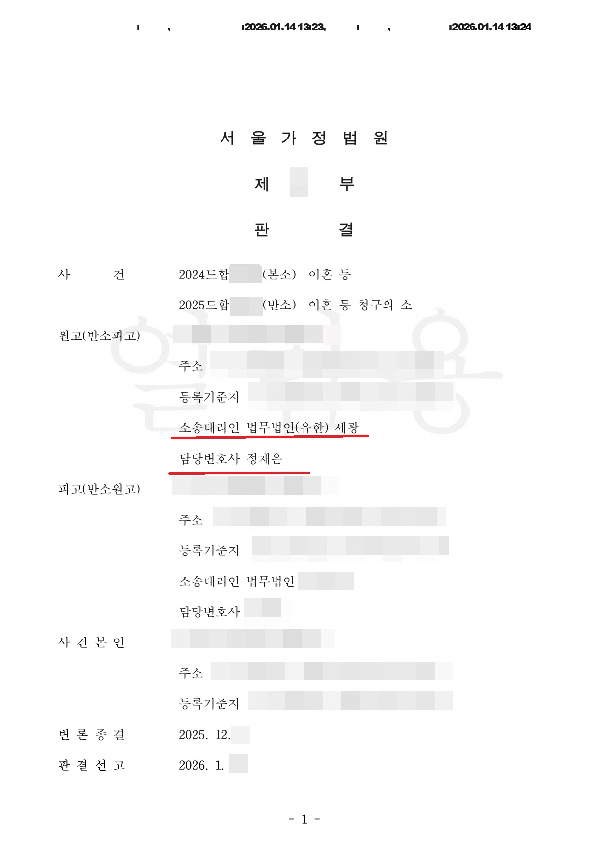 긴 법정공방을 이어가며 이혼소송을 진행하게 되었습니다.
